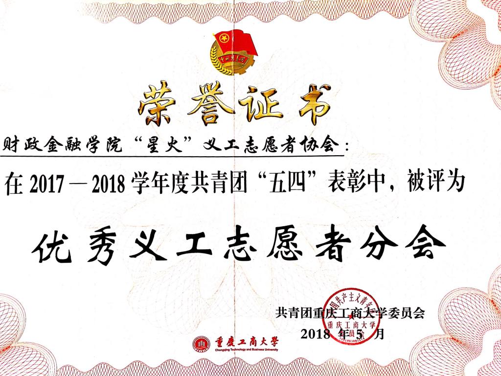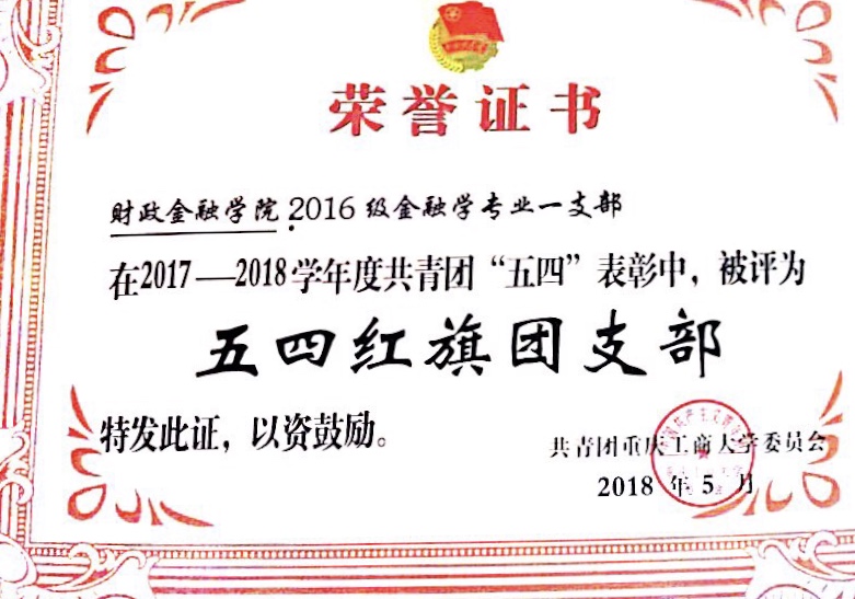 活动在嘹亮的团歌中拉开序幕,党委书记李春茹教授为活动致辞。随后,校团委副书记杨娟宣读了共青团2017-2018学年先进集体和个人。财政bat365中文官方网站分团委荣获“五四红旗团委”、“共青团特色创新奖”,bat365分团委学生会荣获“优秀学生会”,bat365“星火”义协荣获“优秀义工志愿者分会”,金融证券协会、贲育足球社荣获“优秀社团”,2016级金融学专业一支部荣获“五四红旗团支部”,2016级保险学专业二支部、2017级CFA专业二支部荣获“先进团支部”,分团委书记徐阔老师被评为“优秀分团委书记”,扈甜甜同学被评为“共青团标兵”。