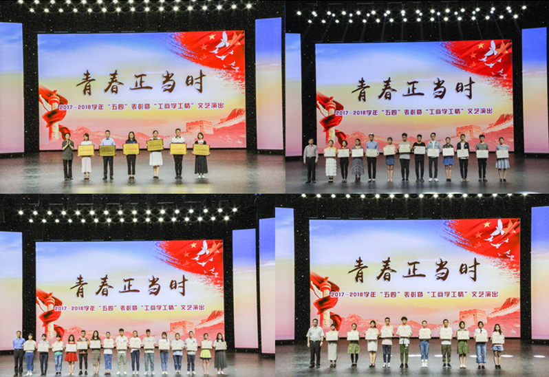“工商学工情”文艺演出——舞蹈《也许明天》,歌曲《说唱脸谱》,情景剧《爱在学工路》,民乐小合奏《春江花月夜》、舞蹈《秋雁声声》——以完美的呈现献礼了五四青年节,节目里传递出的浓浓师生情也温暖了在场的每一个人。“我们在五月的阳光下播撒绿色的种子,在蓝天上抒写壮志凌云的气魄,大地上挺直顶天立地的脊梁,未来,我们要用优异的成绩向党汇报,向祖国汇报,向母校汇报,不忘初心,牢记使命,珍惜芳华,无问西东。青春正当时,我们准备好了!”在铿锵有力的诵读《青春正当时》中,活动圆满落下帷幕。