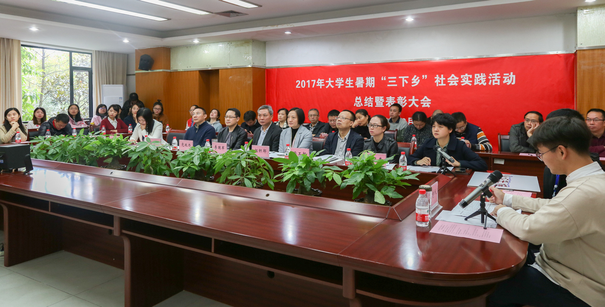财金学院分团委书记徐阔老师代表财金学院针对学院社会实践活动特色和亮点进行了专题汇报,向与会人员介绍了本次“三下乡”活动财金学院取得的累累硕果,本次活动由学院微博、微信平台进行实时推送。同时,市级重点团队还参与了线上三下乡活动,为30余万人答疑解惑,解决了三下乡的相关问题,并让三下乡活动宣传的面更广,受到了校内外媒体的广泛关注,其中包括纸质媒体2篇,国家级网络媒体9篇,省级网络媒体15篇,校级网络媒体11篇。最终财金学院荣获暑期“三下乡”社会实践先进集体奖,徐阔老师获暑期“三下乡”社会实践优秀指导教师。