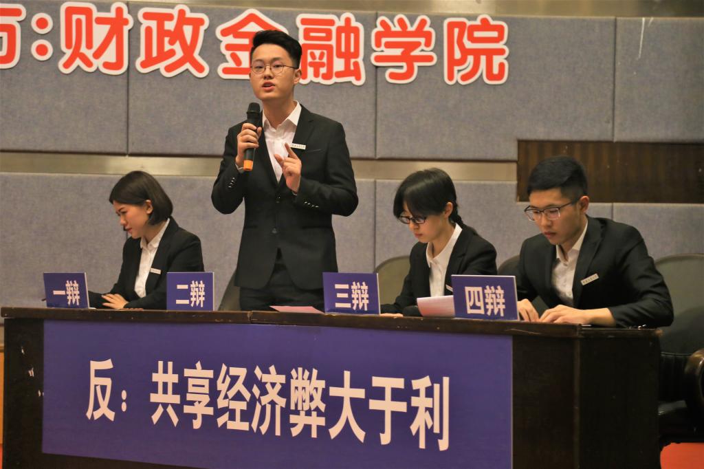 进入决赛的是财政bat365中文官方网站辩论队与环境与资源学院辩论队。双方就“共享经济利大于弊/弊大于利”展开辩论。比赛伊始,作为正方的环境与资源学院开宗明义,通过分析市场现状和共享经济发展趋势阐明了“共享经济利大于弊”的观点。我方辩手则提出了共享经济会提高社会成本,占用社会资源的观点,并从另外一个角度剖析共享经济的蓬勃发展容易导致恶性竞争从而破坏市场规则,影响经济的正常运行,进而论证了“共享经济弊大于利”的论点。在随后的自由辩论与总结陈词环节,双方辩手你来我往、旁征博引,以沉稳冷静、妙语连珠的表现获得了在场观众与评委的阵阵掌声。