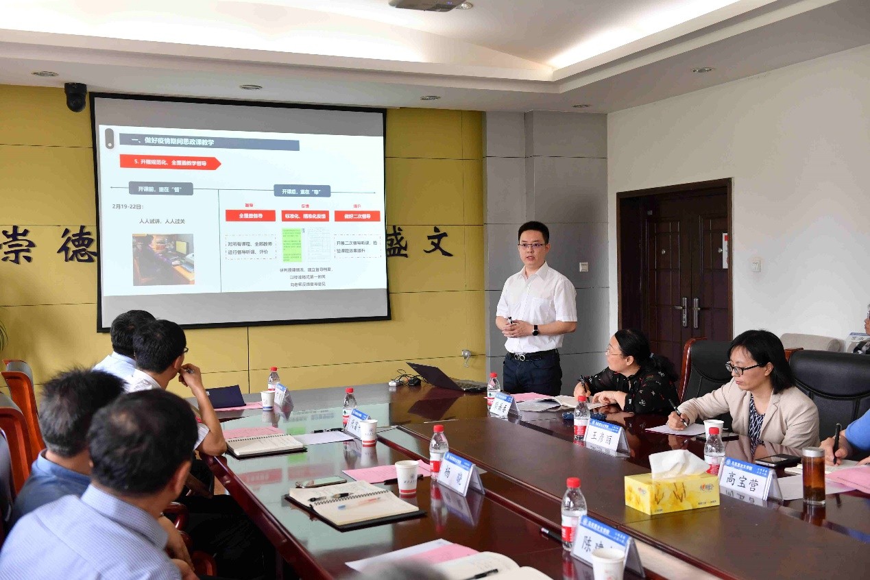 During this meeting, Wu Wenchuan, Party Secretary of School of Marxism, reported the overall situation of online teaching of ideological and political courses and the reform and innovation of these courses from the following four aspects: the ideological and political teaching during the epidemic, the ideological and political education during the epidemic, gains and losses, as well as the next step of work.