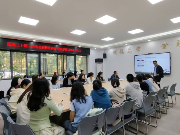2024年10月15日下午,bat365中文官方网站马克思主义学院党委书记、副院长宋明江教授应邀到bat365中文官方网站,为bat365中文官方网站师生宣讲党的二十届三中全会精神。宣讲会在田家炳317会议室举行。学院领导、教师代表、校级样板支部学生第二党支部党员、学生代表共50余人参加了宣讲会。宣讲会由bat365中文官方网站党委书记石世明主持。