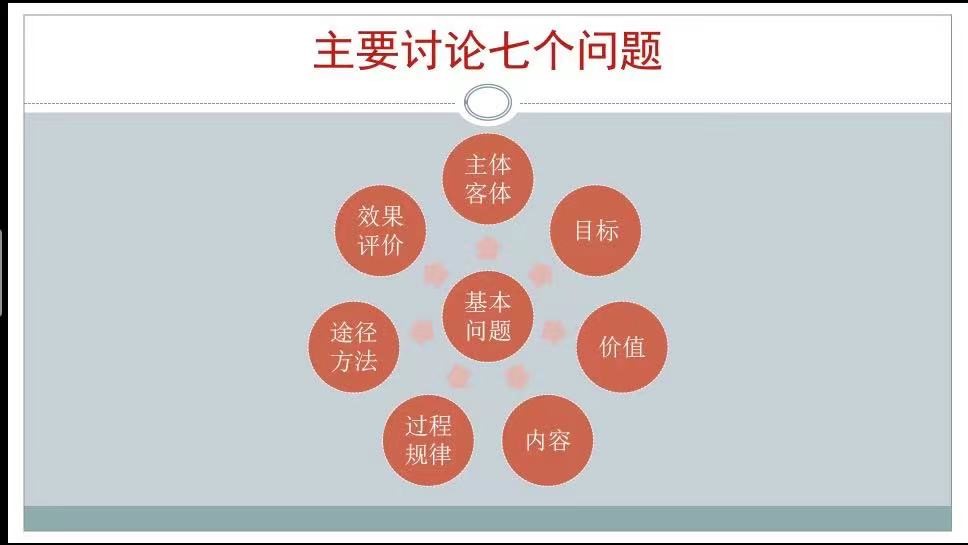 其次,李辽宁教授从主体客体、目标、价值、内容、过程规律、途径方法和评价效果七个方面对宏观思想政治教育研究的范畴进行了详细的讲述。第一,李教授将宏观思想政治教育的主体分为国家、政党和社会,指出这三者的有机结合,共同构成了宏观思想政治教育的主体系统。第二,李教授根据目标的主体层次,将宏观思想政治教育的目标分为国家目标、政党目标和社会目标。他认为在当前中国语境下,宏观思想政治教育的国家目标就是实现国家富强、民族兴旺和人民幸福,与政党目标和社会目标在根本上是一致的。第三,在宏观思想政治教育的价值方面,李教授将其分为国家治理价值、政党治理价值和社会治理价值,指出这三种价值是相互关联、相互影响、互为促进的关系,因此以党的自我革命引领社会革命是当代中国的重大课题。第四,李教授强调主导意识形态教育、法治教育和思想道德教育这三者紧密联系,共同构成了宏观思想政治教育的内容体系。第五,李教授介绍了我国宏观思想政治教育过程的主要规律,包括党建引领律、榜样示范律、要素协同律和德法共治律。第六,李教授指出宏观思想政治教育对途径和方法的关注点有其独特性,可以从理论宣讲、新闻宣传、社会动员、舆论引导和国际传播等途径进行宏观思想政治教育。第七,李教授从评价主体、评价方法、评价标准和结果运用四个方面介绍了宏观思想政治教育的效果评价,指出需要由国家部门牵头,制定完善的思想政治教育评价制度,提高评价的科学性和权威性。