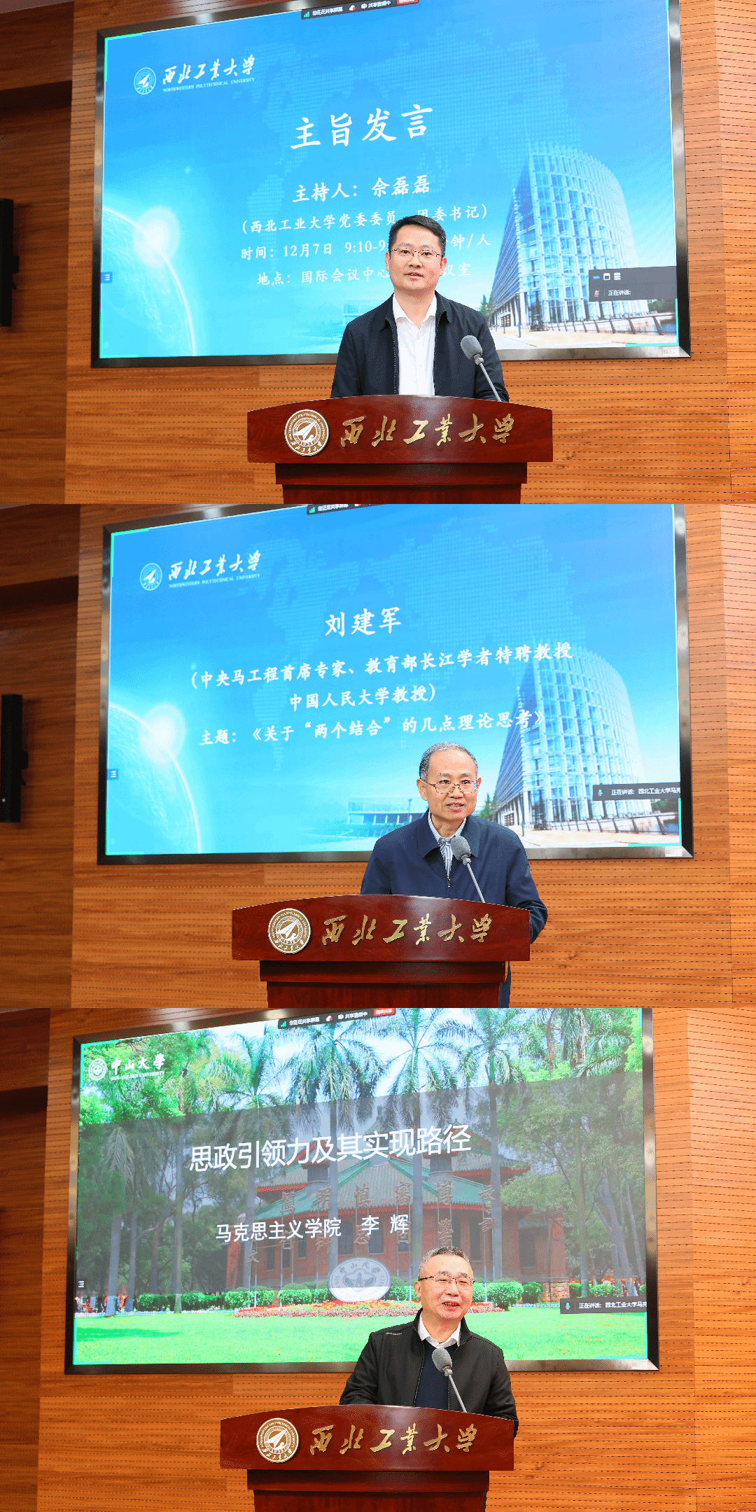 开幕式后,主旨发言由必赢242net官网团委书记佘磊磊主持。在主旨发言中,中国人民大学刘建军教授、中山大学李辉教授作了精彩纷呈的发言。中央马克思主义理论研究和建设工程首席专家、国家领军人才、教育部特聘教授刘建军围绕“关于‘两个结合’的几点理论思考”这一主题进行了主旨发言,从定位、层次、又一次思想解放、新的文化生命体四个方面深入浅出的解读了关于“两个结合”的几点思考。国家教学名师,李辉教授作了“思政引领力的可行路径”的主题报告。他从自身经历出发,从思政引领力的内涵、影响思政引领力的因素、思政引领力实现的路径方面进行了深入的探讨。