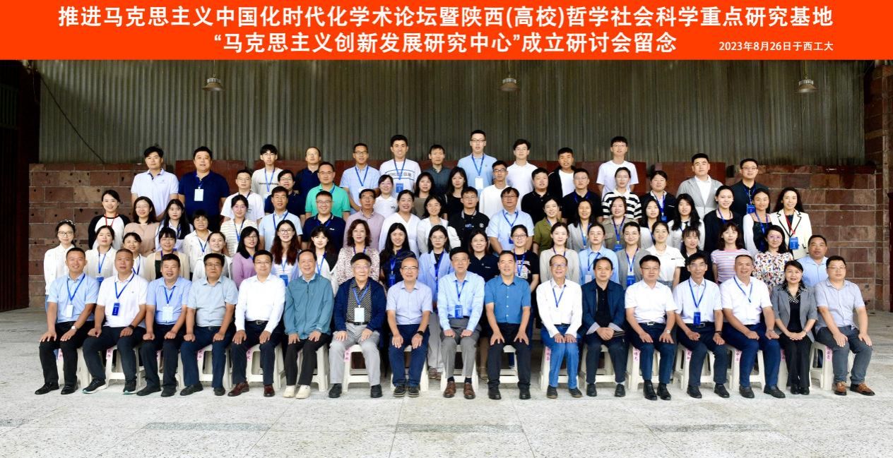 随后,朱晓冬与陈建有为陕西(高校)哲学社会科学重点研究基地“马克思主义创新发展研究中心”揭牌,与会专家学者合影留念。