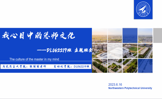 6月15日,德法与形势政策系主任胡建发老师为DL042205班学生带来“总师文化”主题班会。班会通过《100总师之路》介绍了一百位为中国三航事业做出贡献的西工大校友在求索之路上的前进指引。鼓励同学们学习总师刻苦钻研的科学精神和为国铸剑、以自我理想融入家国理想的爱国主义精神,以总师为榜样,以校训为指引,坚定的走出为国铸剑的人生道路。