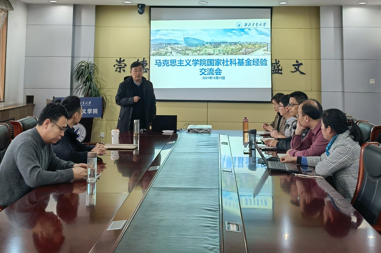 首先,杨院长对学院2021年国家社科基金项目申报工作进行了总结。2021年在马院全体教师共同努力及学校科研院大力支持下,马院有4项课题获得立项,其中一般项目2项,西部项目1项,国家社科基金后期资助项目1项,取得了独立建院以来国家社科基金项目立项的最好成绩。杨院长强调,能取得如此成绩,归结起来是归功于科研院的大力支持和学院科研工作的积极部署,同时也离不开各位专家学者的宝贵意见指导和申报老师的辛勤努力。杨院长同时也强调,学院科研项目申报还有很大提升空间,还需要各位老师坚持不懈的努力。