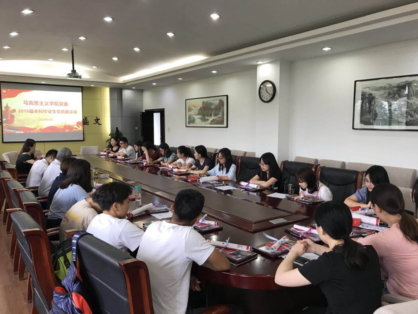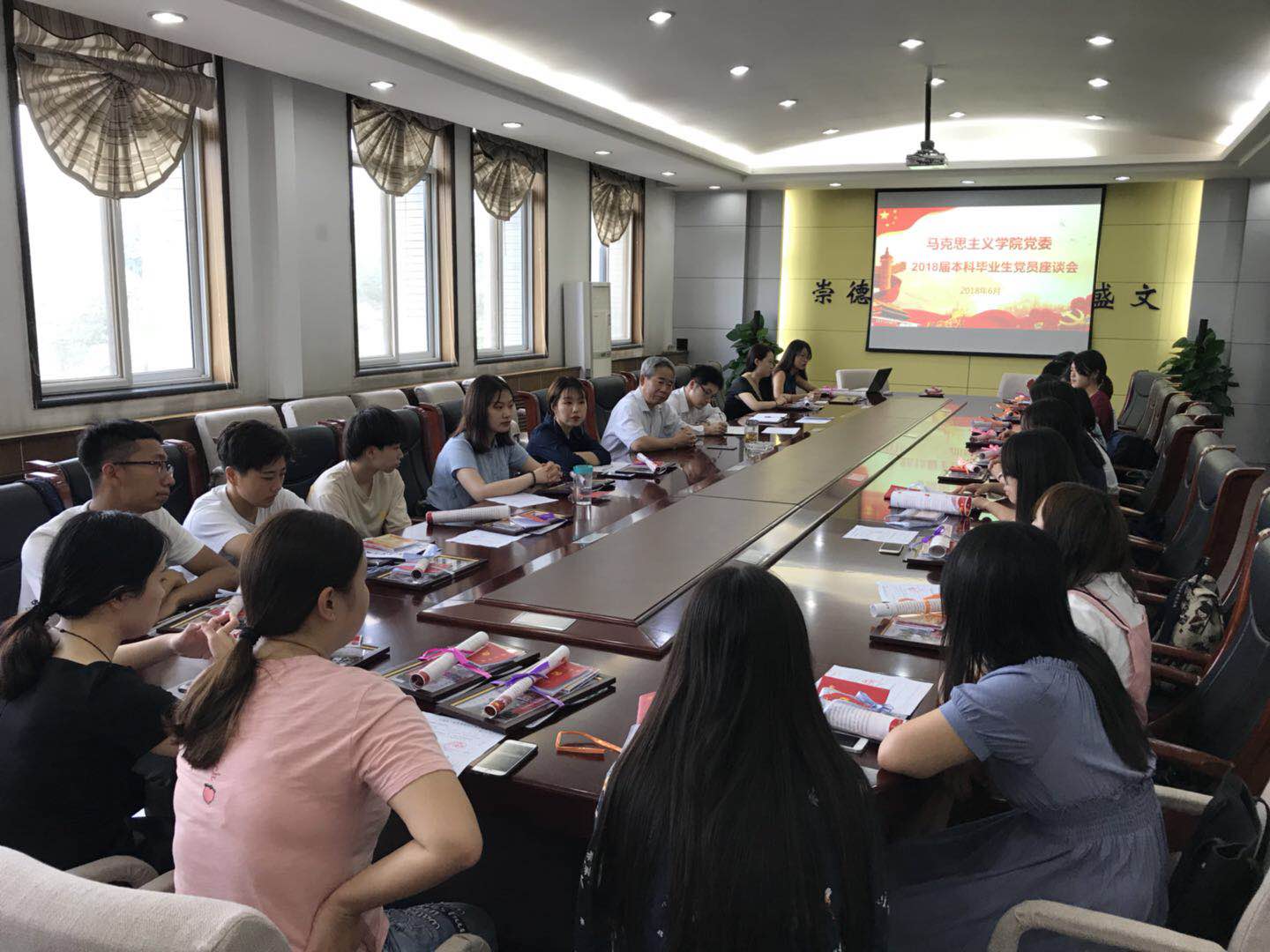 6月25日上午,必赢242net官网党委在学院208会议室召开2018届本科毕业生党员座谈会,学院党委书记鲁卫平,学生党建主管、辅导员曹良玉以及2018届本科毕业生党员参加了座谈会,会议由党委副书记袁源主持。