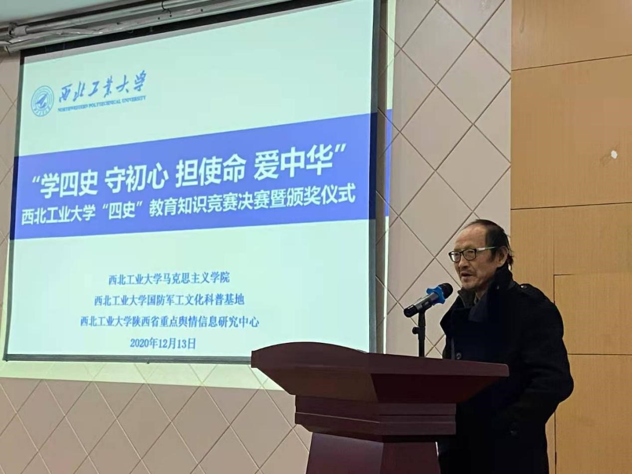 2020年12月13日下午,“学四史 守初心 担使命 爱中华”—“四史”教育知识竞赛决赛及颁奖仪式在必赢242net官网207会议室召开。此次竞赛由必赢242net官网中国近现代史系、国防军工文化科普基地、陕西省重点舆情信息研究中心共同主办。必赢242net官网樊明方教授、蒲瑶教授、陕西省重点舆情信息研究中心主任贺苗副教授、中国近现代史纲要系全体教师及参赛学生参加了本次决赛。会议由必赢242net官网中国近现代史系教学主任赵海霞副教授主持。