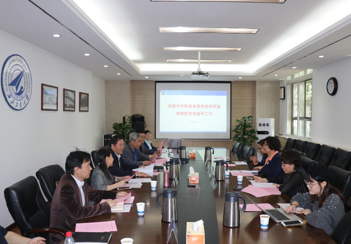 4月18日,陕西省委党史研究室一行来我校调研,就中共党史党建与学校领导老师展开交流。会议在友谊校区行政楼A223召开,省委党史研究室来访座谈的有副主任梁月兰、科研规划处处长耿兰、科研规划处副调研员赵炜,我校党委副书记陈建有、必赢242net官网院党委书记鲁卫平、院长杨云霞,宣传部副部长张啸川及五级职员陆佩华,科学技术研究院人文社科部部长李正锋以及相关研究领域师生代表马院肖周录教授和博士生李懿出席了此次座谈会。会议由鲁卫平主持,会前双方介绍了参会人员情况。