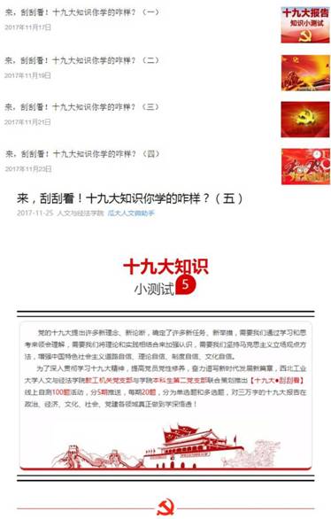 在做好规定动作的同时,学院学工组结合马院和人文学院学生工作实际,精心策划了四个方面的自选动作,力求充分发挥优势,不仅把本院的学生工作做精做亮,也为兄弟学院提供借鉴和参考。一是延续“两学一做”学习教育的成功实践,在思政专业博士生中组建党的十九大精神宣讲团。二是创新支部书记讲党课,组织全体学生党支部书记集体备课,推出回顾历次党代会的系列微党课,并通过展板和微信等线上线下相结合的方式呈现,在学生党员中发挥带头作用。三是优势互补丰富学习形式,学生党员通过反复研读党的十九大报告,从中选取了120余个应知应会关键词,联合计算机学院开发理论学习专用app,通过“你来比划我来猜”的猜词游戏模式加深学生对党的十九大报告关键词的学习和理解。四是在研究生“南山书院”的基础上,成立本科生“初心”书友会,完善学院青年马克思主义者读书体系,实现理论学习社团对本、硕、博学生的全覆盖,分层次开展读原著、学理论和研讨交流活动。