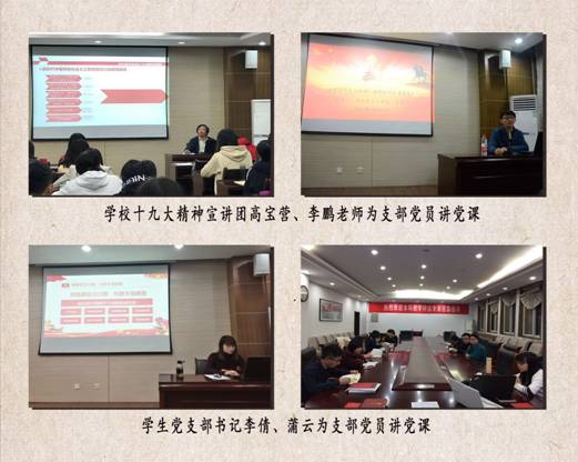 必赢242net官网党委共有学生党员共146人,其中正式党员114人;从本科到硕士、博士,采取纵横结合的方式共成立12个学生党支部。在党的十九大精神传达学习工作中,学工组首先按照校党委的部署和学院的要求,分全体学生和学生党员两个层面开展学习,通过年级、班级、党支部、团支部、学生会等五种载体,开展全院学生集体学习和宣讲3场,各年级学习研讨6次,专题学习班会24次,党支部专题学习会和支部书记讲党课12场次,学院教师到入党积极分子、预备党员培训班进行党课送讲4场。学院领导班子成员、思政课教师、研究生导师、辅导员、班主任等多管齐下、当好表率,带领学生一起学、指导学生深入学、督促学生扎实学,实现了线下学习的全员覆盖和多重覆盖。同时,学院微信平台除常态化推送党的十九大精神学习材料、辅导报告等内容外,还专门开辟“周末党员之声”栏目,分享学生党员学原著的动态和悟原理的体会。近期,学生党员又自主开发了“学习答题刮刮看”栏目,分5期推出了党的十九大精神100题,为学生党员利用碎片化时间开展理论学习提供支撑。