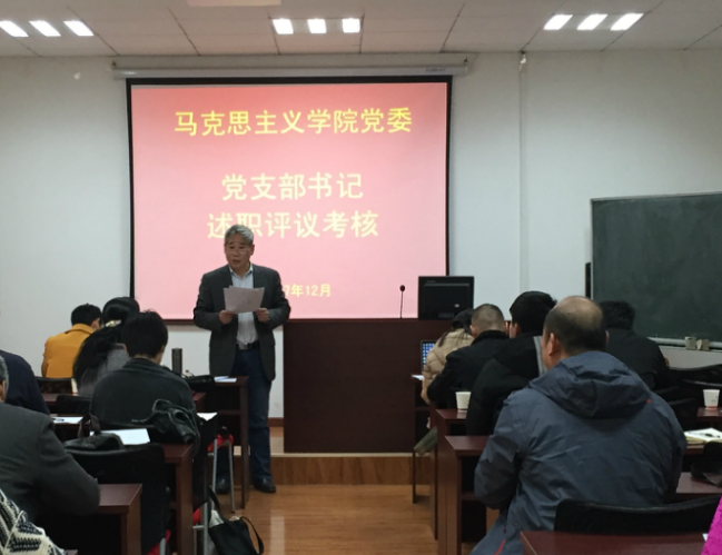 马院直属支部书记高旭红、经济学系支部书记袁晓军、法学系支部书记李娜、公共管理系支部书记来爽、机关支部书记曹良玉及15613-3支部书记王成、2017级硕士第二支部书记王乐依次从2017年以来支部书记履职情况、支部开展的工作、支部工作中存在的主要问题和下一步的工作思路进行了现场述职,每位党支部书记除了完成了2017年校院级党建工作的规定动作外,还都结合专业特点开展了支部党建特色活动,支部亮点工作,并对工作中存在的问题进行了认真的查找,对下一步的工作思路进行了梳理,提出了整改措施。