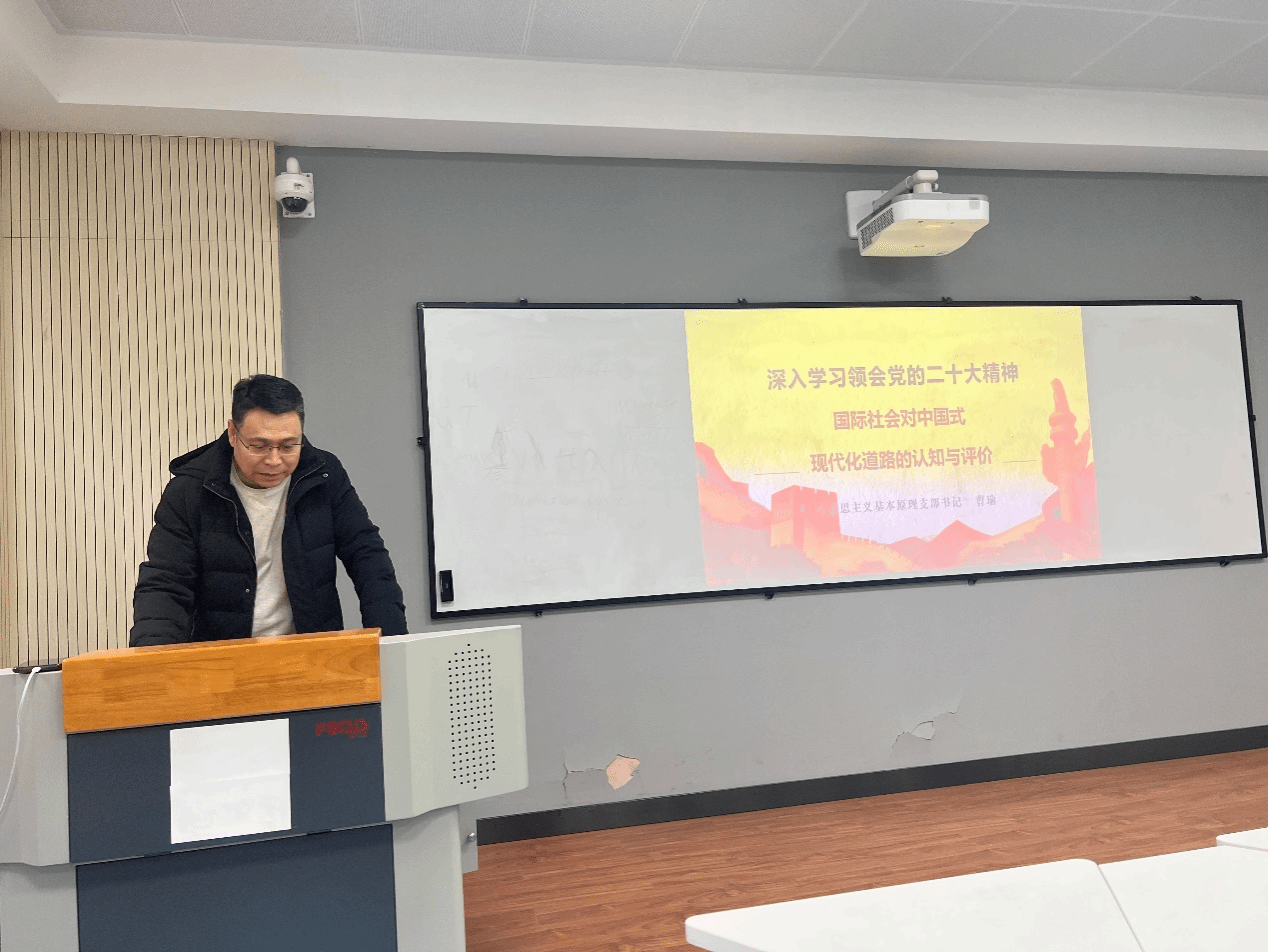 会议伊始,为深刻领会、准确把握二十大的精神实质和丰富内涵,切实引导全体党员同志把思想、认识、行动统一到党的二十大精神上来,曹瑜书记为全体党员讲授了题为《国际社会对中国式现代化道路的认知与评价》的专题党课,全面介绍了当前国际社会对中国式现代化主要成就的认识、成功秘诀的探索、宝贵经验的总结、世界意义的肯定以及前景挑战的思考,从另一视角帮助各位党员深入理解了中国式现代化的基本特征和本质要求。