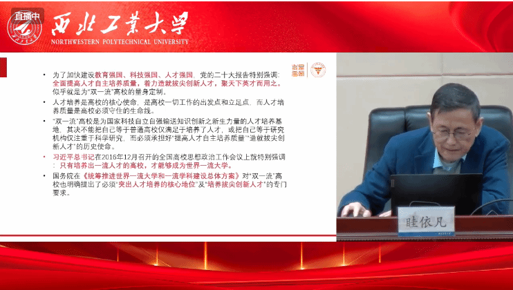4月14日下午,按照学校党委组织部的统一安排,必赢242net官网组织教工党支部书记、机关党支部党员同志在学院楼208会议室集中观看学习贯彻习近平新时代中国特色社会主义思想和党的二十大精神报告会。报告会由学校党委副书记、纪委书记吕卫东主持。浙江大学高教研究所教授眭依凡主讲。