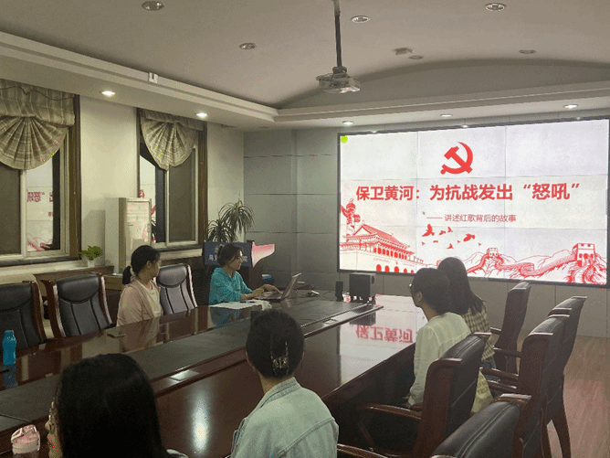 接着,马克思主义基本原理系硕士生、青马先锋宣讲团成员崔颖文就歌曲《保卫黄河》展开介绍,用诞生于战火中的音符带领在场党员重温峥嵘岁月,使同志们更加意识到今日幸福生活得来不易,应当倍感珍惜。