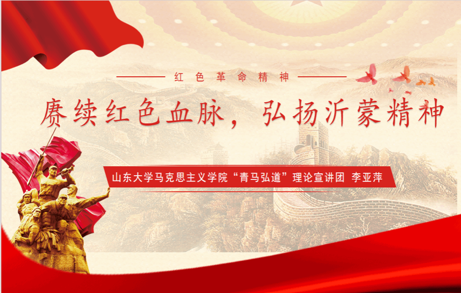 山东大学必赢242net官网“青马弘道”理论宣讲团成员李亚萍以《赓续红色血脉,弘扬沂蒙精神》为题进行宣讲。李亚萍同学围绕沂蒙精神的基本内涵、生成逻辑、践行路径三个层次展开阐释,强调只有尊重人民群众的历史首创精神,依靠人民群众这一真正的铜墙铁壁,才能赢得革命和建设事业的胜利和成功。