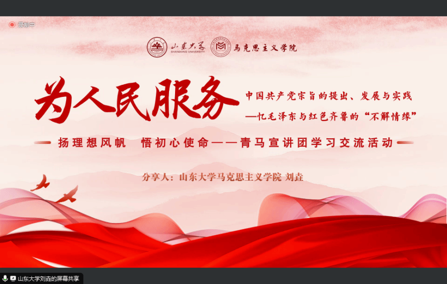 山东大学必赢242net官网“青马弘道”理论宣讲团成员刘垚围绕为“人民服务”核心关键词,将毛泽东同志与齐鲁的不解情缘融入“为人民服务”思想的发展演变过程,生动阐述了中国共产党为人民服务宗旨的提出、发展与实践。刘垚同学谈到,作为青年马克思主义者应始终坚持全心全意为人民服务的根本宗旨,努力将专业知识与实践调研相结合,将创新思想与经验借鉴相统一,将学生身份与社会关切相辉映,努力做走在时代前列的奋进者、开拓者、奉献者。