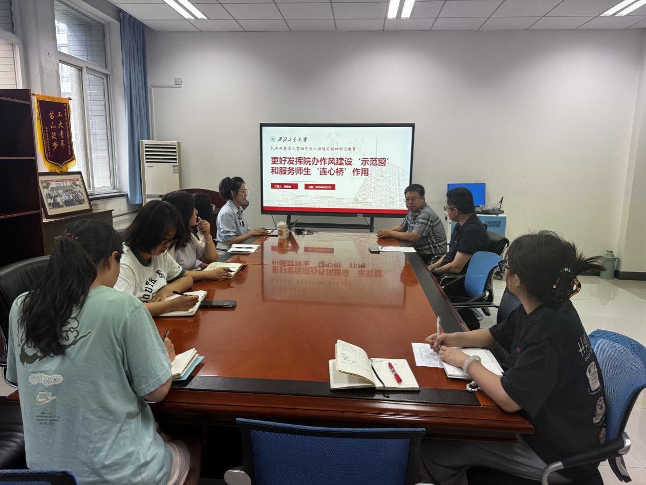 6月27日,必赢242net官网机关党支部书记郭雅楠以《更好发挥院办作风建设‘示范窗’和服务师生‘连心桥’作用》为题在学院楼209党员活动室,为学院机关党支部讲授深入贯彻中央八项规定精神学习教育专题党课。