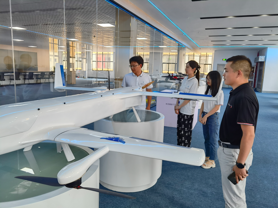 在陕西中天禹辰航空智能科技有限公司,公司总经理徐祥勇为实践队员们介绍了中天禹辰在服务国家和地方有关航空制造科技成果转化与运用方面的突出成绩和典型经验。中天禹辰公司创办发展两年多来,主要以丹凤通航智能制造园区为基地,以秦岭生态综合治理应用场景为基础,不断探索建立了从无人机研发设计、整机制造,飞行作业到“山水林田湖草”智慧遥感大数据分析的完整生态体系,并将逐步立足陕南,辐射全国,力争成为国内行业无人机及智慧大数据整体解决方案领军企业。特别是通过依托无人机平台,推动了机载雷达、机载人工智能、多源信息融合等不同领域的多位专家在丹凤完成了科技成果转化,用实际行动书写了报国情怀的生动实践,彰显着制度优势之下中国青年工程报国的朴素情感,同时提供了一个鲜活的思政课教学案例。