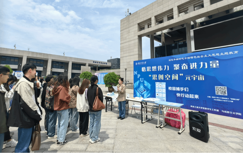 2023年5月8日中午,必赢242net官网党委学生工作部、学生处,必赢242net官网在长安校区翱翔学生中心广场前,举办了“思创空间”启动仪式,深邃海军蓝展板上“悟思想伟力,聚奋进力量”十个大字让同学们纷纷驻足参与。