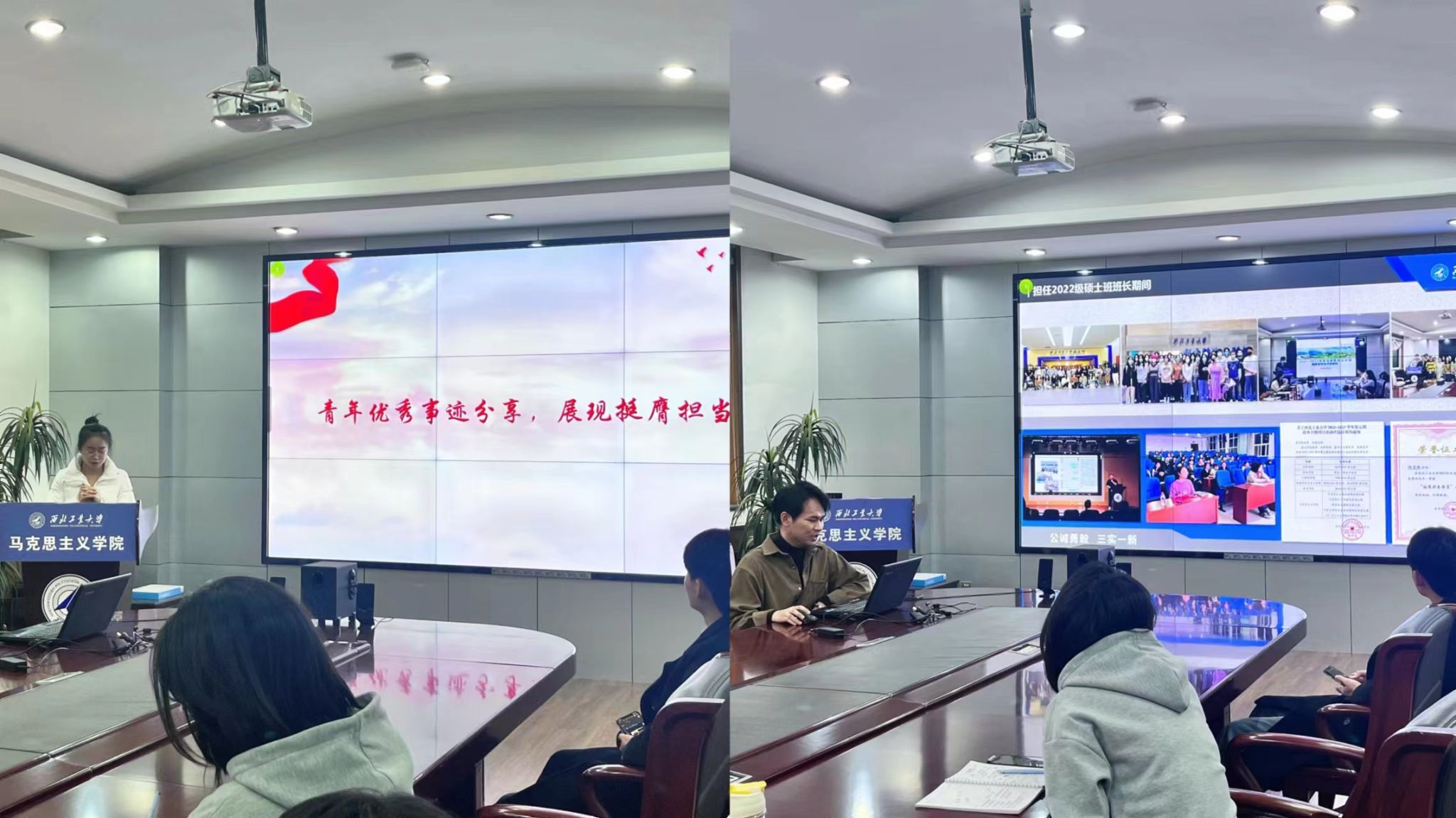 团日活动第三项,必赢242net官网挺鹰担当先进学生代表从自身学习、工作、生活出发分享个人事迹。中国近现代史基本问题研究系团支部书记杨京翰讲述了担任学院2022级硕士班班长以来的工作成效和工作感想,2023级硕士生樊小燕分享了在学院担任助管工作中的点点滴滴。在场每位青年团员都认真聆听,在对标支部优秀团员的过程中找寻自身不足,涵养进取品格。