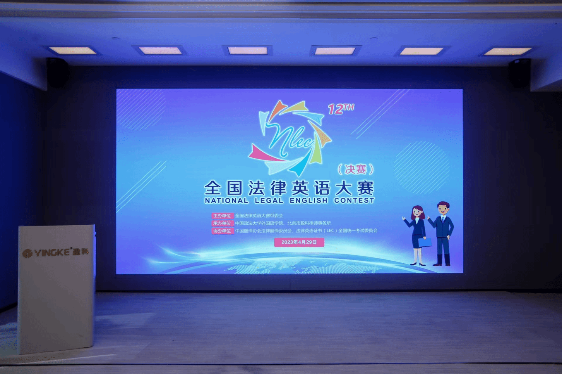 2023年4月29日,由全国法律英语大赛组委会主办,中国政法大学外国语学院和北京市盈科律师事务所承办,中国翻译协会法律翻译委员会和法律英语证书(LEC)全国统一考试委员会协办的第十二届全国法律英语大赛决赛在北京市盈科律师事务所正大中心巴塞罗那厅隆重举行,大赛主题为“用英语表达你的法律观点”。