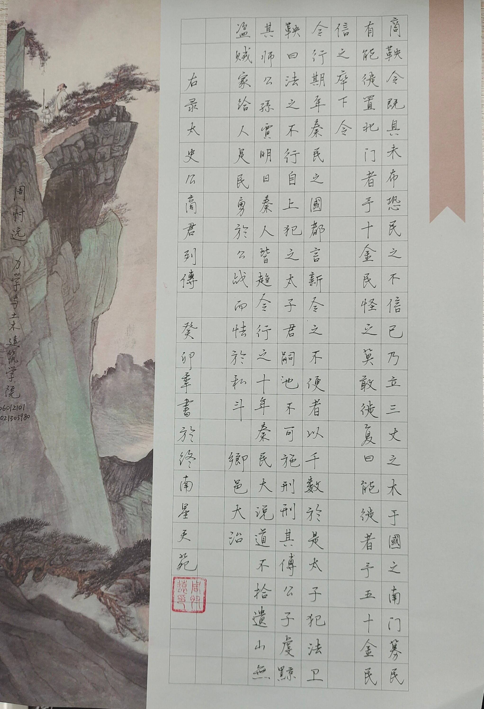 执起手中之笔,落一幅水墨蹁跹,传诚信之道,扬诚信之风。本次书法大赛,不仅展示了西工大学子的书法风采,丰富了校园文化生活,还有助于青年学生在个人创作中坚定理想信念,筑牢信仰之基,彰显诚信本色,切实做诚信的“躬行”者,为明天书写奋发之章节。