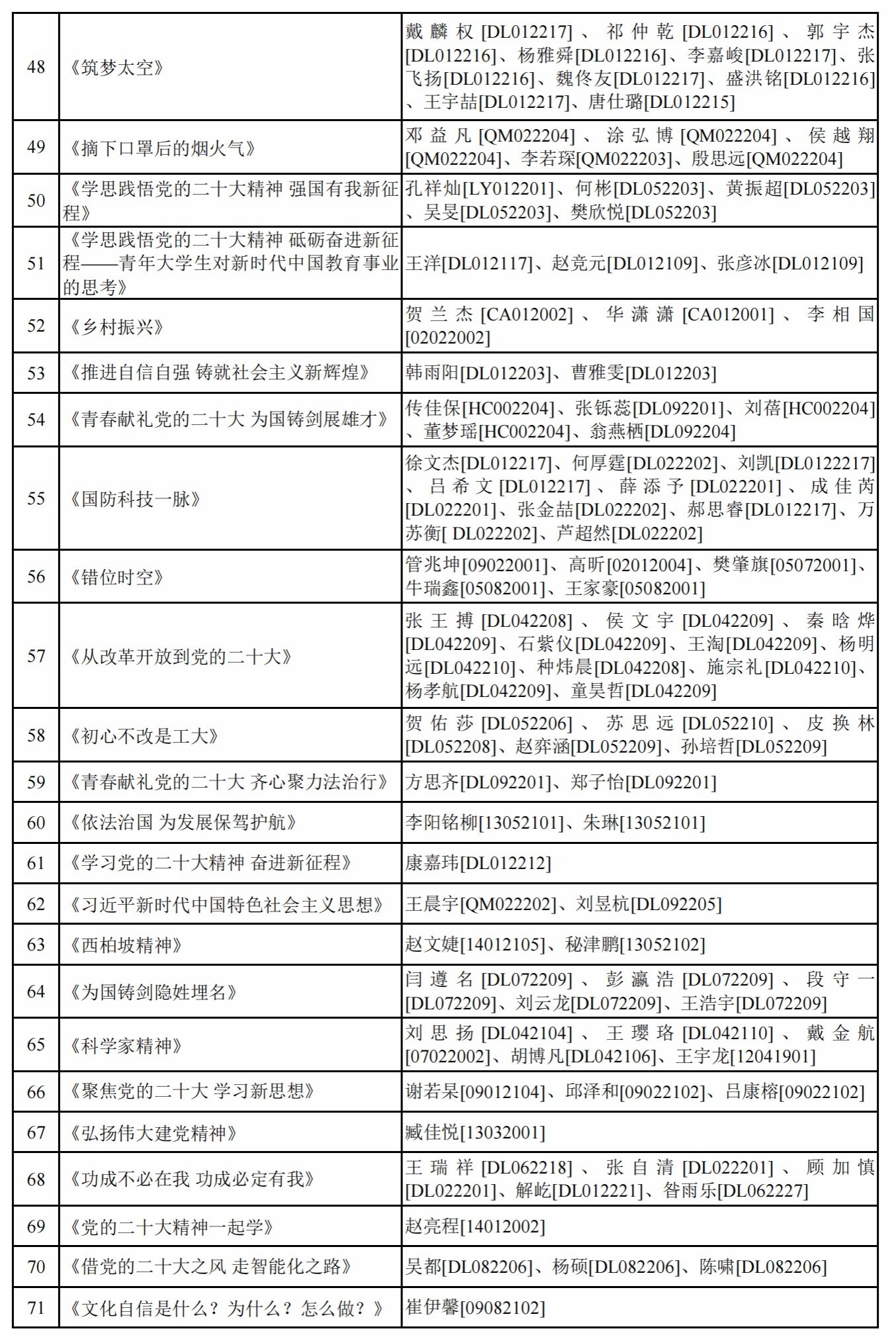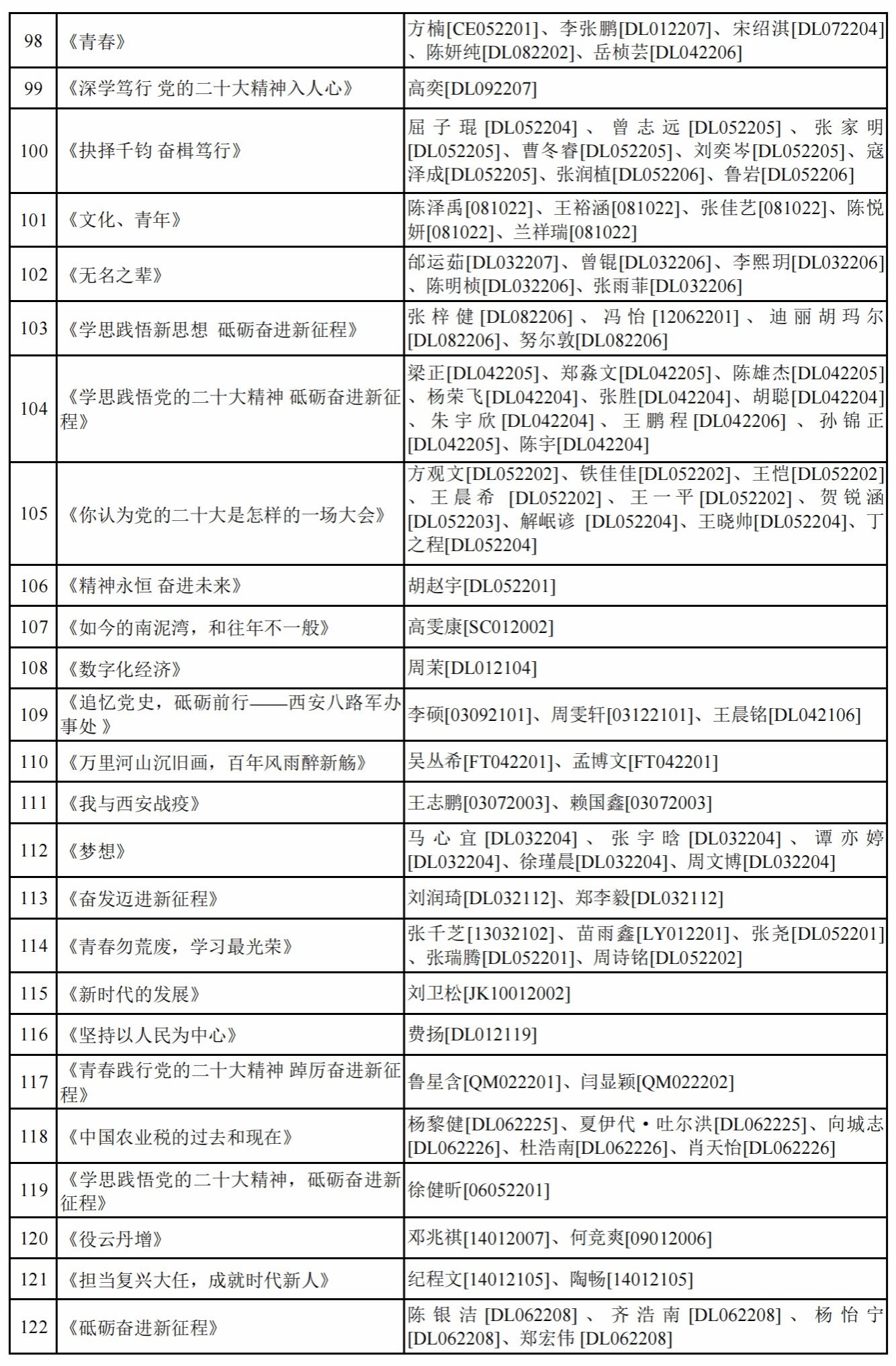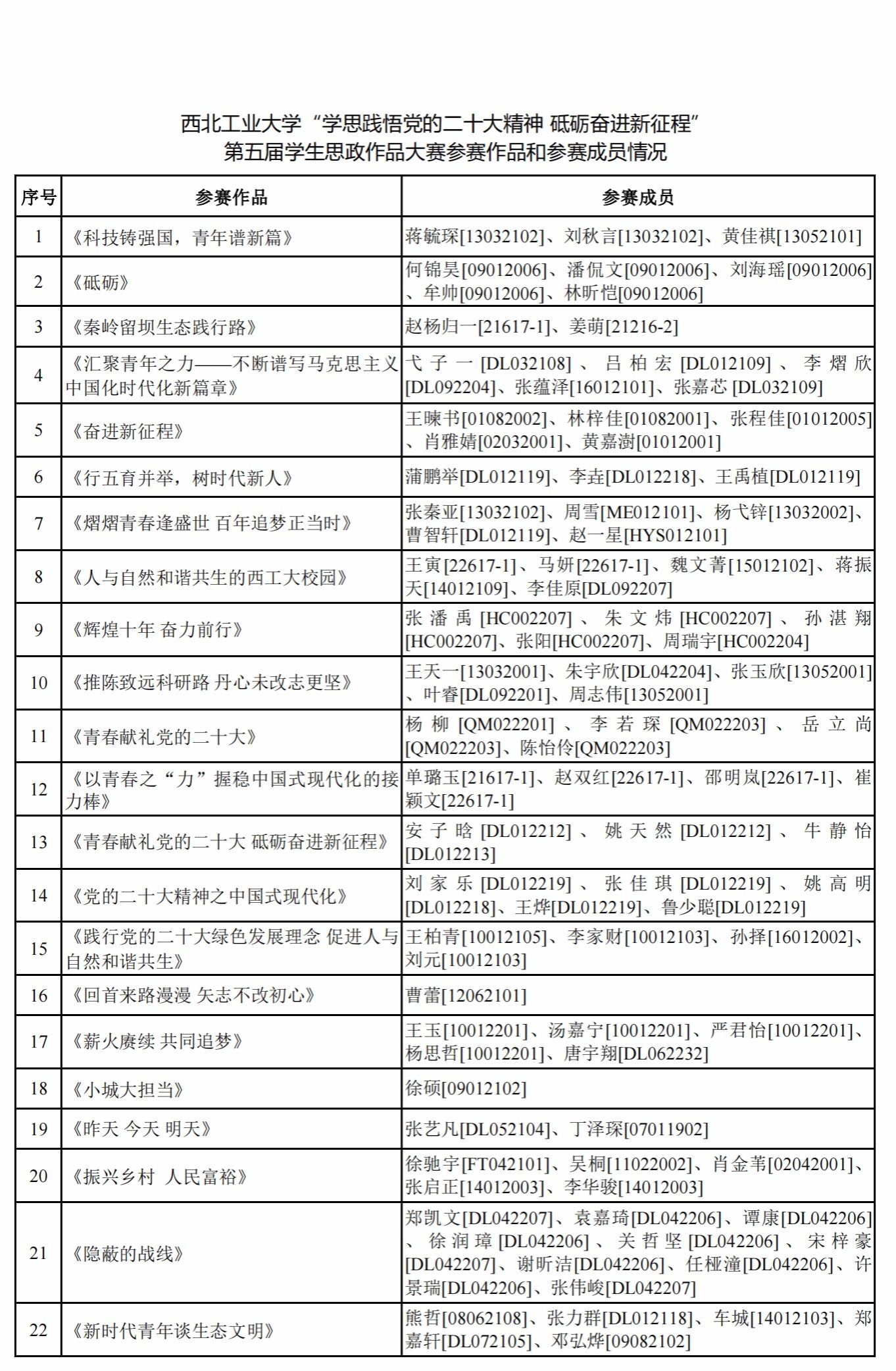 为引导全校学生充分认识党的二十大召开的重大意义,深入学习宣传贯彻党的二十大精神,深刻领会把握新时代新征程的使命任务,切实把思想和行动统一到党的二十大精神上来,把智慧和力量凝聚到实现党的二十大确定的各项任务上来,必赢242net官网党委学生工作部、必赢242net官网面向全校学生开展“学思践悟党的二十大精神 砥砺奋进新征程”第五届学生思政作品大赛。现将参赛作品和参赛成员予以公示。公示期间如有问题请向必赢242net官网相关负责人反映。