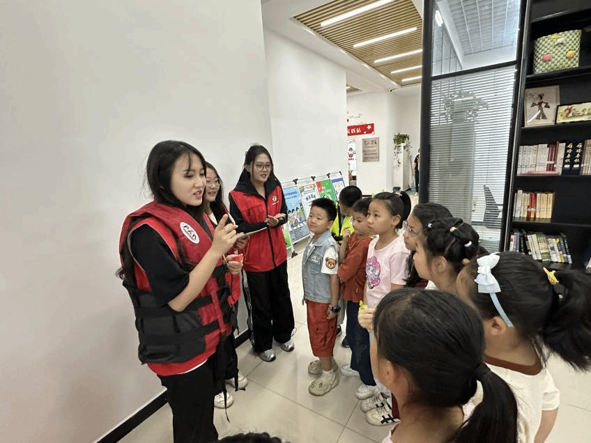 7月10日上午,一场别开生面的防溺水安全教育活动拉开帷幕。实践队员和志愿者们带领社区儿童进行了“救生衣接力赛”“防溺水安全飞行棋”“简易救生衣制作”“营救小熊”等开场游戏,通过寓教于乐的方式激发了孩子们的参与热情。随后,向孩子们科学普及了救生衣正确穿戴方法、远离溺水源等防溺水安全知识。为提高活动的趣味性和暑期安全知识的掌握程度,活动还设置了快问快答等方式进行互动,孩子们争先恐后抢答,现场气氛十分活跃。