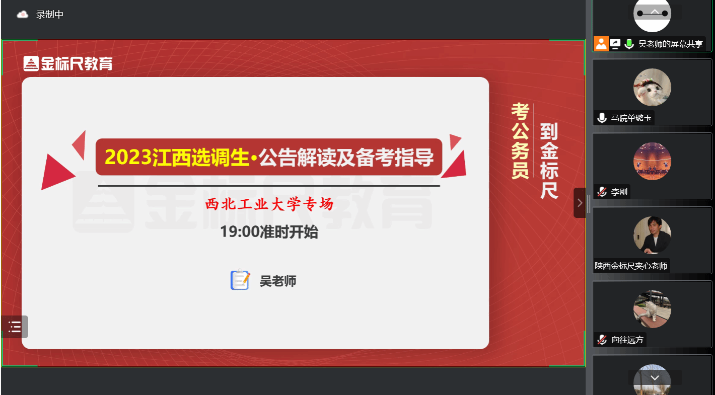 讲座伊始,吴沈川老师对2023年江西选调公告进行了权威性解读,通过对选调对象及计划、选调程序和时间安排的讲解,对比2021与2022江西省定向西工大选调录取情况,说明了江西省政府对选调生选拔与培养等相关工作的重视以及在政策上给予的支持。
