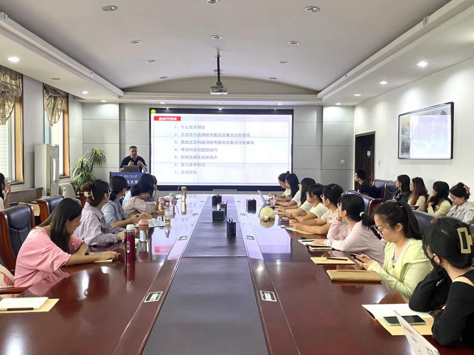 为切实有效推进必赢242net官网学生就业,助力学生深入了解选调生考情与招录程序,2024年9月25日,必赢242net官网邀请金标尺教育的杨晓亮老师在208会议室开展选调生专题讲座,介绍并解读选调生考试政策与考试内容。学院团委书记王换老师和同学们一起参加会议,讲座由兼职辅导员单璐玉主持。