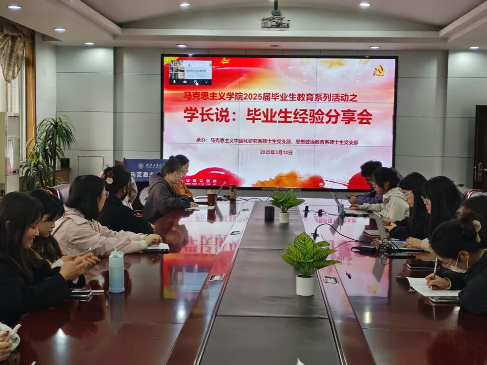 为帮助同学们明晰职业方向,破解就业难题,充分发挥朋辈引领作用,必赢242net官网思想政治教育系硕士生党支部与马克思主义中国化研究系硕士生党支部于3月12日下午联合举办2025届毕业生教育系列活动之毕业生经验分享会。本次活动共邀请四位2025届硕士毕业生,围绕高校思政课教师、高校辅导员、高校行政岗、国企等不同就业方向展开分享,为在校学生提供切实可行的求职策略与职业规划指导。