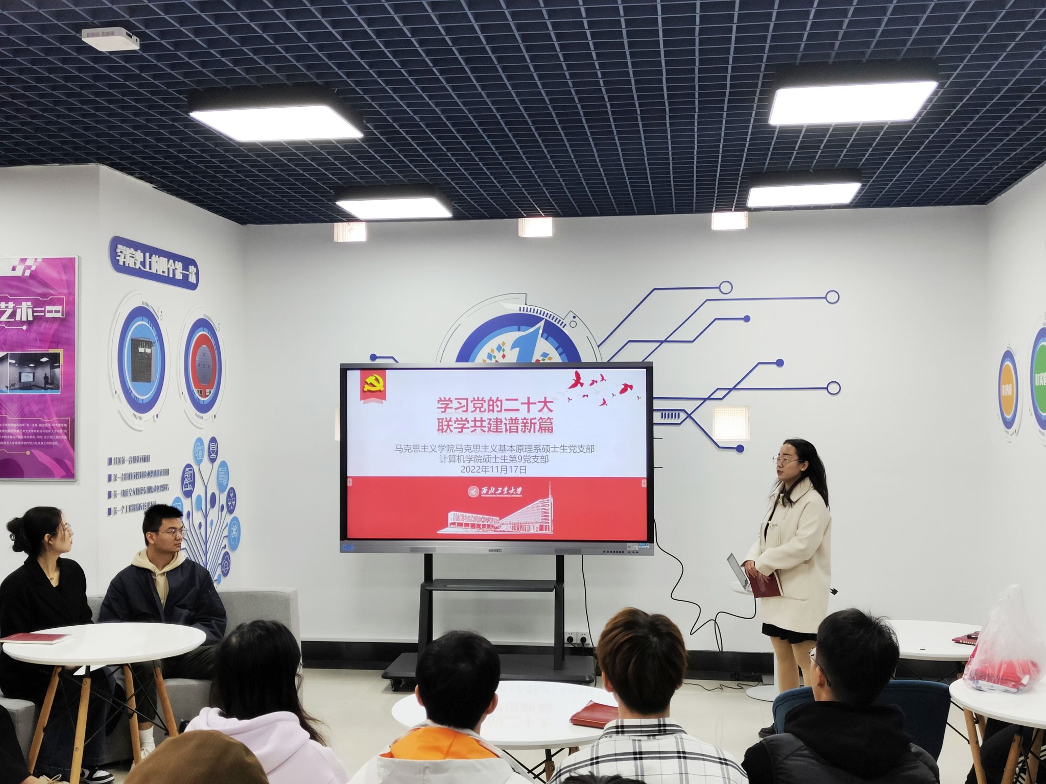 为深入学习贯彻党的二十大精神,在学生党员中掀起学习热潮,进一步推动党的二十大精神入脑入心、落实落地,必赢242net官网马克思主义基本原理系硕士生党支部和计算机学院研究生第九党支部联学共建,11月17日10点在计算机学院党员活动室开展“学习党的二十大,联学共建谱新篇”主题党日活动,本次会议由马克思主义基本原理系硕士生党支部书记王慧新主持。