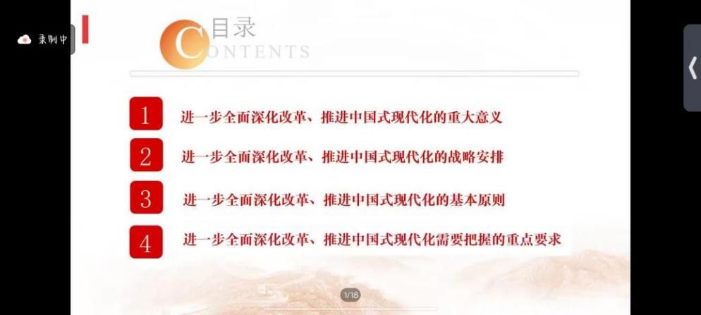 导读环节结束后,韩华教授对两位同学的导读给予高度评价。他充分肯定了两位同学的充分准备和深入理解,并强调了进一步全面深化改革、推进中国式现代化的理论和实践的重要性。韩教授进一步强调,全面深化改革是推动中国式现代化的关键举措,必须始终坚持党的全面领导、以人民为中心、守正创新、系统观念、全面依法治国等原则。同时,也要深刻理解和把握党的二十届三中全会《中共中央关于进一步全面深化改革、推进中国式现代化的决定》中的战略安排、基本原则和重点要求,为推动高质量发展、构建人类命运共同体贡献力量。