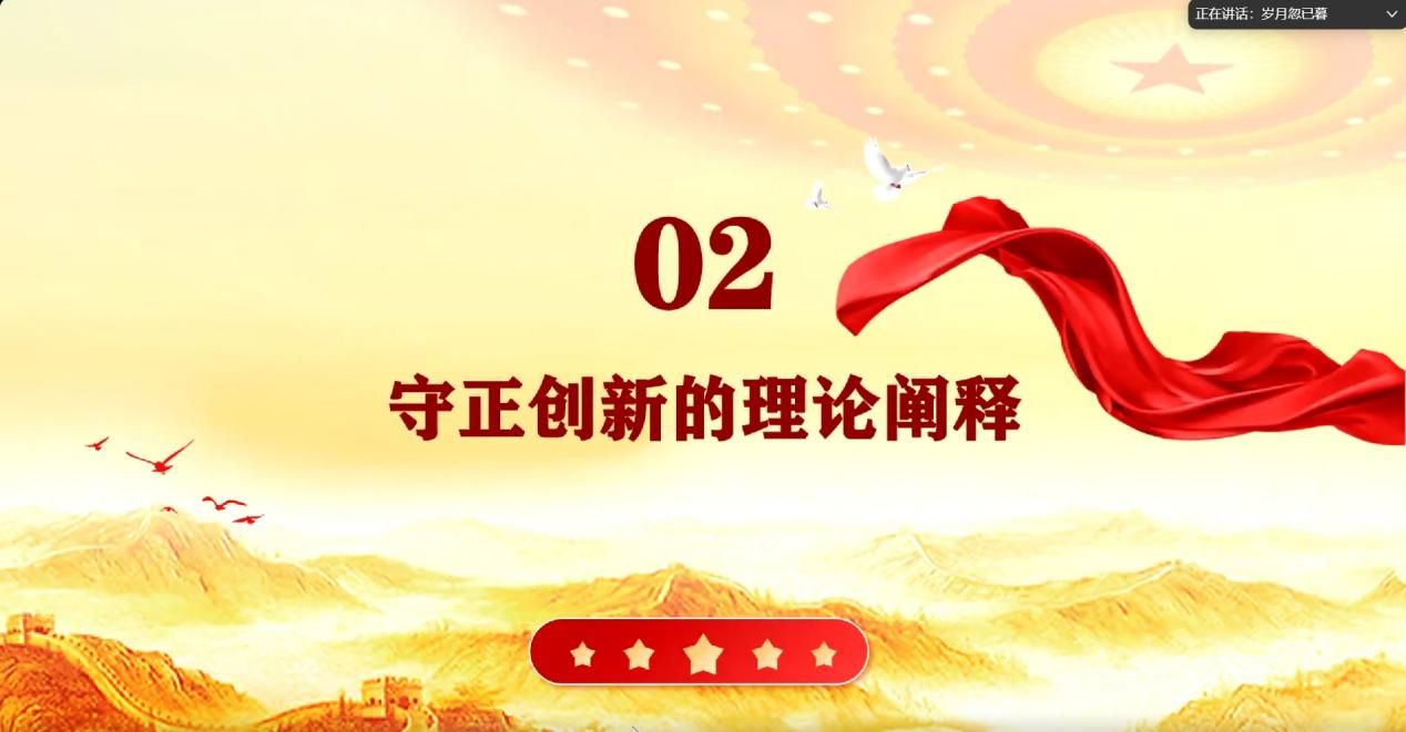 2025年3月8日,中国高等教育学会马克思主义研究分会2024年度“马克思主义经典著作研读”资助计划支持小组——必赢242net官网习近平新时代中国特色社会主义思想学习读书小组第五十三期活动以《习近平:必须坚持守正创新》为主题进行学习研讨。本次读书会由必赢242net官网鲁杰思政课工作室主办,陕西师范大学董辉教授作为对话教师,硕士生李红霞同学主持,中国高等教育学会马克思主义研究分会督导组成员尉迟庆文同学应邀参与,通过线上交流的形式,为师生们搭建了一个思想交流、智慧碰撞的互动平台。