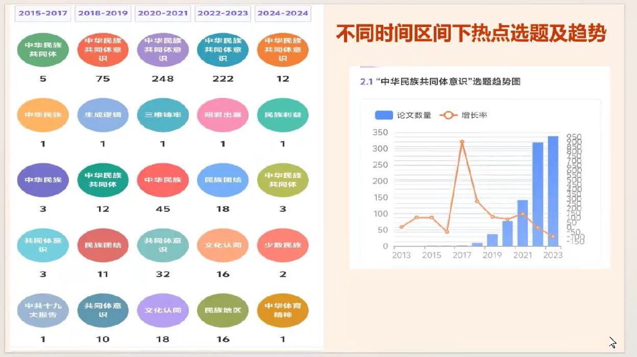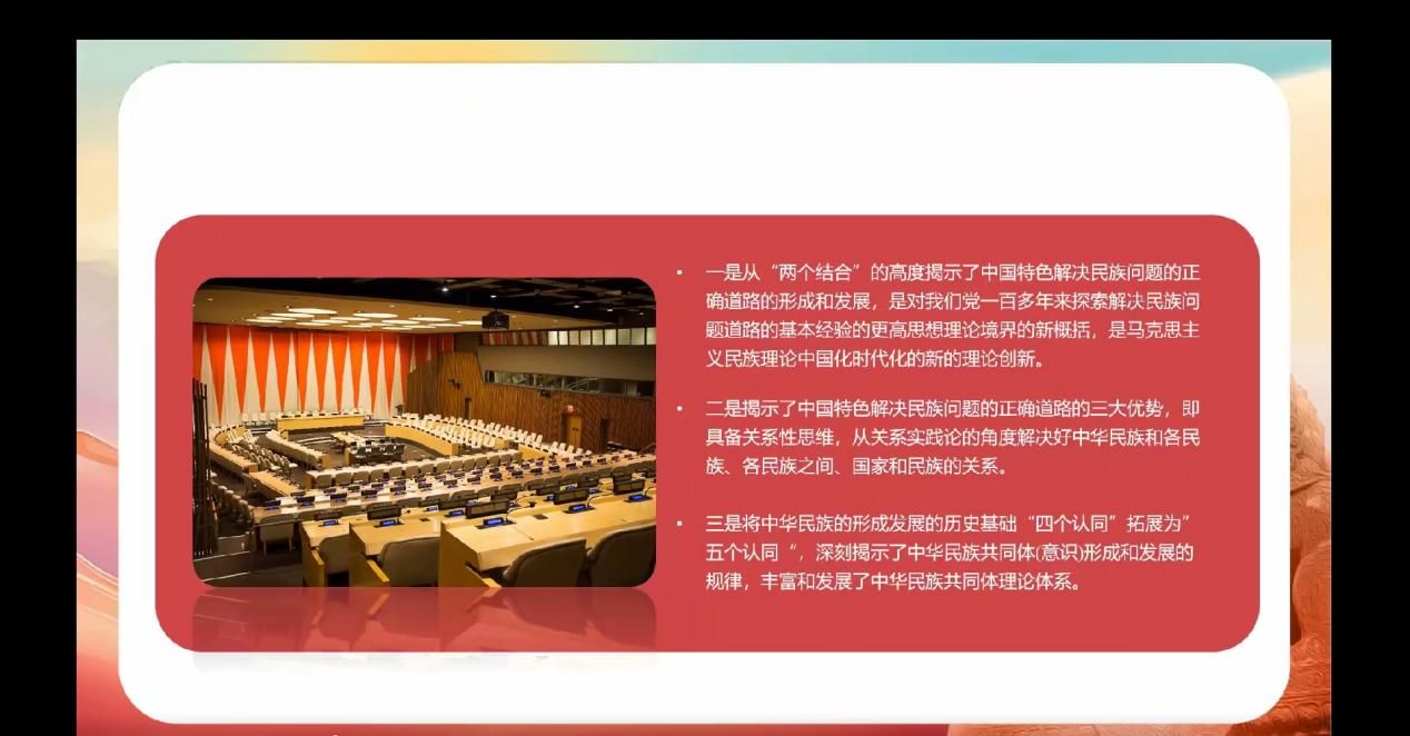 接着,必赢242net官网硕士生朱静同学以中华民族共同体意识为切入点,从历史渊源与现实基础、时代意义、具体实践、路径探索与研究热点分析对讲话内容进行了深入浅出的解读。同时,她通过聚焦中华民族共同体意识当前的研究现状,为同学们提供了宝贵的学术视角。