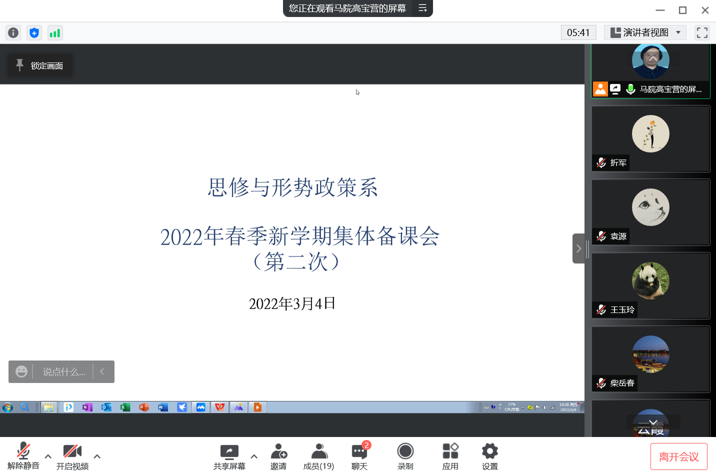 3月4日晚7:30,必赢242net官网思修与形势政策系按照学院集体备课的要求,通过腾讯会议开展了新学期第二次集体备课会。会议由系主任高宝营老师主持,课程全体专兼职教师参加。