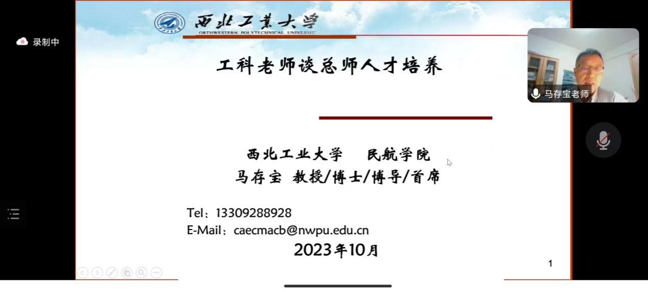 接下来,民航学院马存宝教授以“工科老师谈总师人才培养”为题展开讲座。马存宝分别从总师型人才内涵、民航大类人才培养目标、毕业生应获得的核心能力以及思政课的作用四个方面进行了分享。马存宝老师谈到,总师型人才不仅在某个领域有深厚的专业知识,还具备跨学科的综合能力、广泛的知识面、卓越的技术能力以及较强的协作能力。他还谈到,对于人文社会科学的毕业生来说,一方面要具备丰富的学科知识,另一方面要善于沟通并能具备一定的国际视野。此外,马存宝老师还强调思政课大有作用,一是培养德育、工程与社会、个人和团队等引领能力;二是思政课能为个人的发展提供理想信念支撑。最后,马存宝就西工大和工程技术元素融入思政课提出独到的建议。