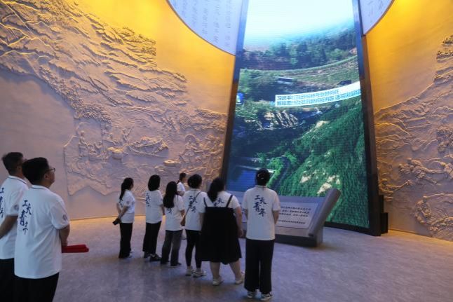 最后,实践队员一行参观了高西沟水保生态教育基地。通过参观,一行人了解到高西沟村地处黄土高原丘陵沟壑区腹地,域内地形破碎,沟壑纵横,在古代,该地自然环境恶劣,水土流失严重,灾害频发,十种九不收。20世纪60年代开始,高西沟村就开始探索治山治沟、保持水土的做法。几十年来,四任村班子带领村民坚持治山治沟、封山禁牧、综合治理,全村林草覆盖率目前已达70%,过去沟壑纵横的黄土高原已变成山清水秀的“塞上好江南”,铺展开一幅美丽的绿色画卷。高西沟人不断推进治理之路,围绕绿水青山做出乡村振兴硕果累累的文章,践行着“绿水青山就是金山银山”的理念,实现人与自然和谐相处。