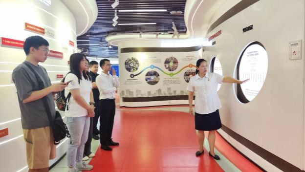 7月23日,实践团首先来到西安市雁塔区红色物业会客厅进行参访学习。雁塔区物业协会党委书记、秘书长刘丽华为实践团详细讲解了雁塔区红色物业的建设情况、工作机制和工作成效。雁塔区打造了以“红石榴”为形象标识的区级红色物业会客厅,在各社区、小区和商务楼宇广泛设立“红石榴驿站”,着力构建党组织领导下的社区、业委会、物业服务企业、业主等多方联动的“红色物业”体系,打造了党建引领基层社会治理的“雁塔样板”。雁塔区不仅在上百家物业企业成立党组织,而且已经在两个小区的业主委员会成立了党组织,构建起了党建引领基层治理的“两纵三横”工作体系。目前,西安法院诉源治理共享驿站、雁塔区物业纠纷人民调解委员会、雁塔区网格员实训基地等机构已进驻雁塔区红色物业会客厅,使红色物业会客厅与红石榴驿站成为打通联系服务群众“最后一米”的重要抓手。