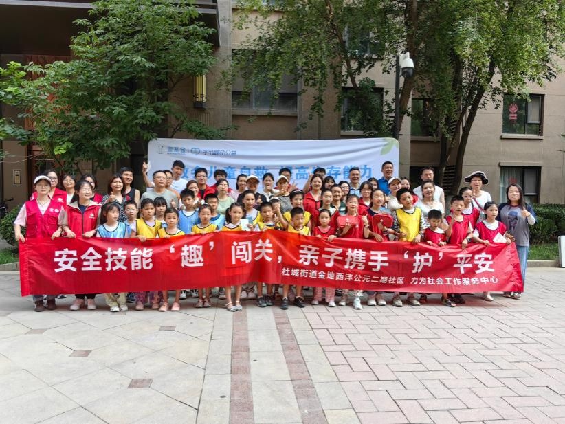 7月12日上午,“金光悦盾·防灾减灾”家庭健康助力跑主题活动在社区热力开赛,众多亲子家庭踊跃参加。活动创新性地将防灾减灾知识技能融入趣味竞赛,精心设置了AED使用、海姆立克急救法、应急救生衣制作、毛毯担架计时赛、DIY沙袋防洪堤、布林结制作六个寓教于乐的打卡任务点。在志愿者的引导下,各组家庭依次完成各项防灾减灾技能闯关任务。紧张有趣的闯关过程不仅有效普及了实用的家庭防灾减灾知识与应急避险技能,共同提升了参与家庭的安全意识和自救互救能力。