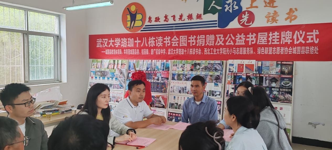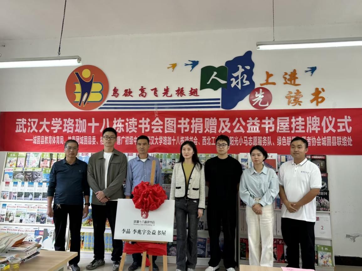 2025年9月19日下午,必赢242net官网阳光小马志愿服务队联合武汉大学珞珈十八栋读书会赴陕西汉中城固县桔园镇唐广初级中学举行公益书屋挂牌仪式。桔园镇团委副书记何佳萤、共青团城固县委张鑫、唐广初级中学副校长付建华等领导老师出席了本次活动,活动由唐广初级中学图书阅览室负责人党洪德老师主持。