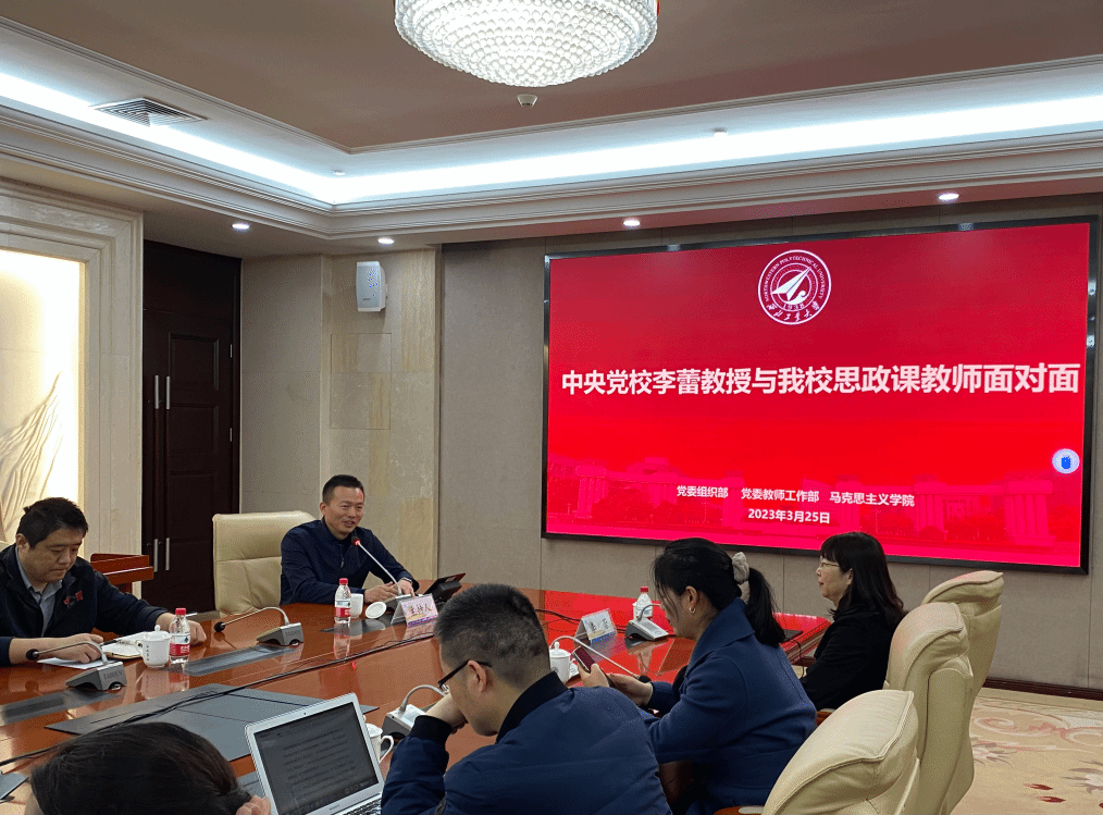 3月25日上午,中央党校李蕾教授与我校思政课教师面对面活动在友谊校区国二会议室召开。本次座谈会在学校党委组织部、党委教师工作部的大力支持下,邀请到中央党校经济学教研部教授、中央党校创新工程执行专家、中央党校经济学部科研秘书,省部级干部培训班主讲教师李蕾教授,同我校思政课教师进行交流座谈。必赢242net官网思政课教师参与座谈会,会议由必赢242net官网党委副书记(主持工作)蒲传新主持。