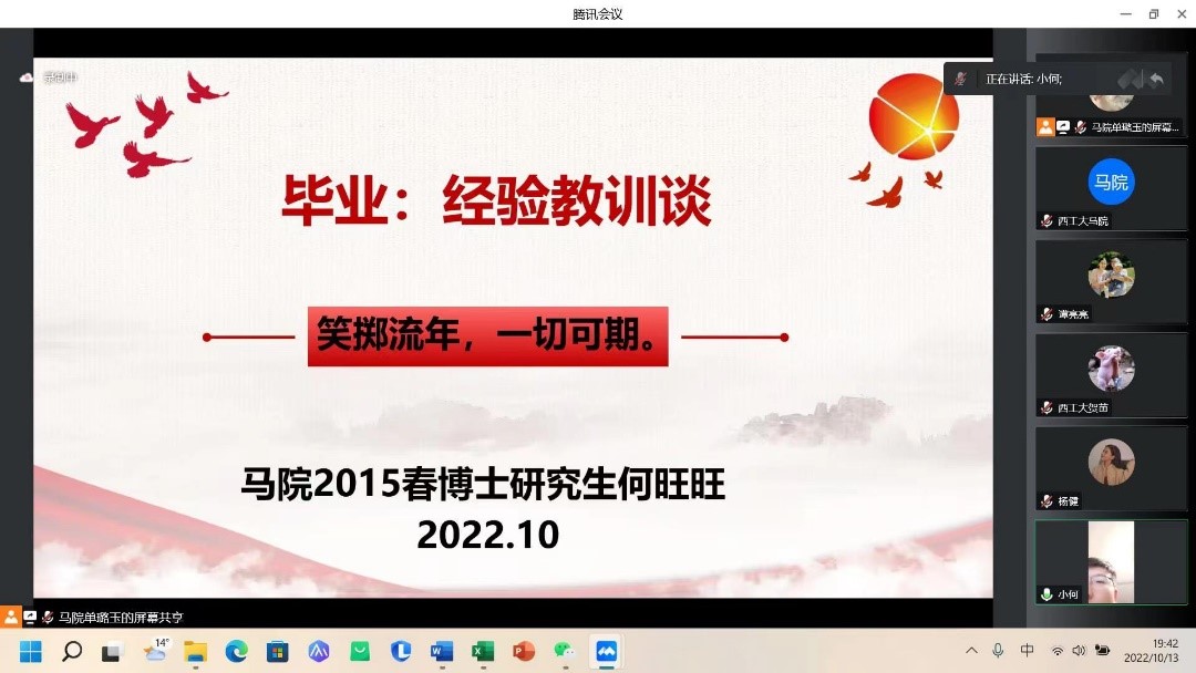 为进一步加强校友和学院之间的联系,凝聚校友力量,畅通经验交流渠道,必赢242net官网以学校第十届校友周活动为契机,按照校友会总体安排,积极举办校友“云座谈”经验分享会。10月13日晚校友经验分享会于线上进行,学院邀请了两位就职于高校的博士校友,他们分别是2021届校友何旺旺和2022届校友谭亮亮。会议由必赢242net官网副院长贺苗主持。