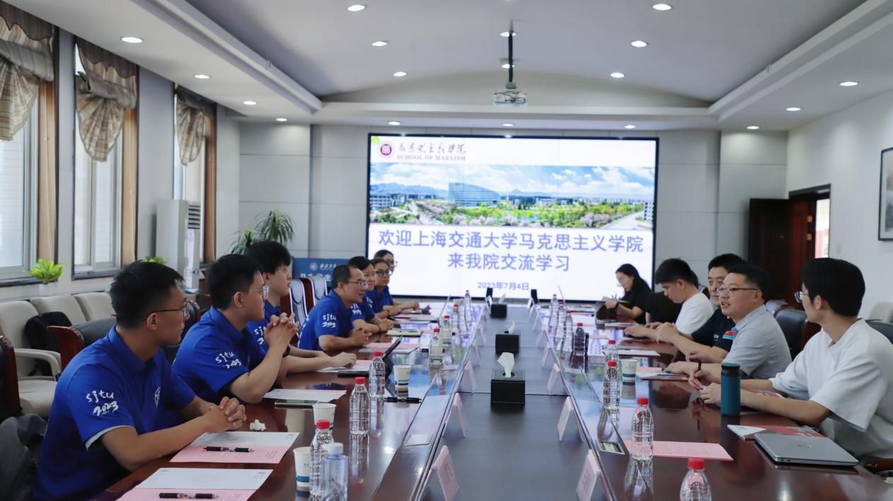接着,双方就学院建设、师资队伍、宣讲团开展情况等事宜在必赢242net官网208会议室进行深入交流探讨。李刚首先对上海交通大学必赢242net官网师生们的到来表示热烈欢迎,并邀请与会人员共同观看了学院的宣传片,了解学院的发展历程和建设情况。杜夏明介绍了上海交通大学必赢242net官网在学院建设、宣讲团建设等方面的特色做法和体会。