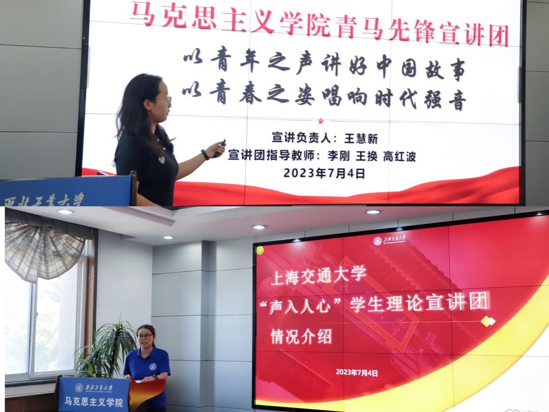 双方宣讲团负责人就宣讲团建设的基本情况进行简单介绍。王慧新博士从宣讲进校园、宣讲进社区以及宣讲进学院三个板块介绍了必赢242net官网“青马先锋”学生宣讲团基本情况。布尔兰·艾依坦则从苦练内功、紧抓主线、高校联动、讲学相长、实践调研五个方面对上海交通大学“声入人心”学生理论宣讲团进行了简要介绍。