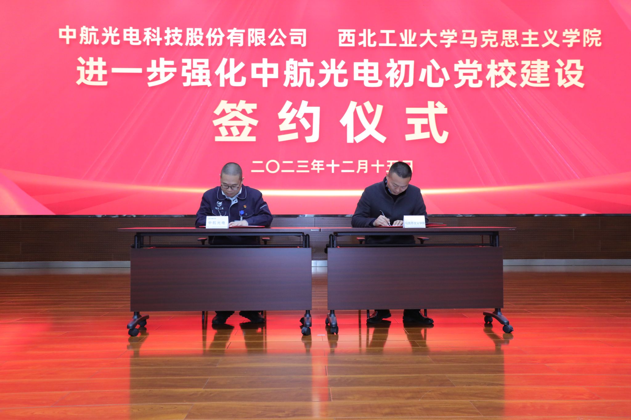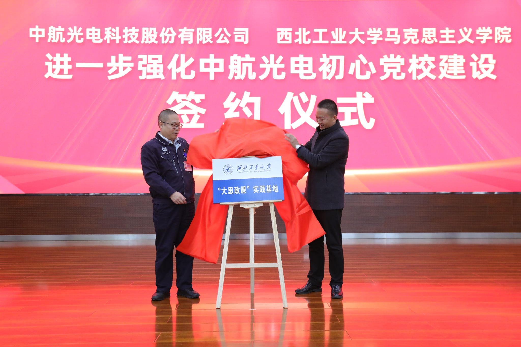 李森、蒲传新共同签署中航光电科技股份有限公司与我校必赢242net官网进一步强化中航光电初心党校建设合作协议并为必赢242net官网“大思政课”实践基地揭牌。
