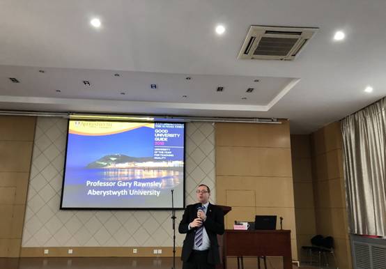 11月24日上, 亚伯大学国际政治系公共外交教授Gary David Rawnsley做客西工大“灵犀学术殿堂”,在长安校区人文与经法学院报告厅为我校师生作了题为《大众传媒与国际交往》为主题的报告会。本次报告会由党委研究生工作部、国际合作处主办,必赢242net官网承办,必赢242net官网蒲瑶教授主持,必赢242net官网樊明方教授、杨冰郁副教授等院内外教师以及部分外籍教师,与100余名工大学子一同聆听了报告会。