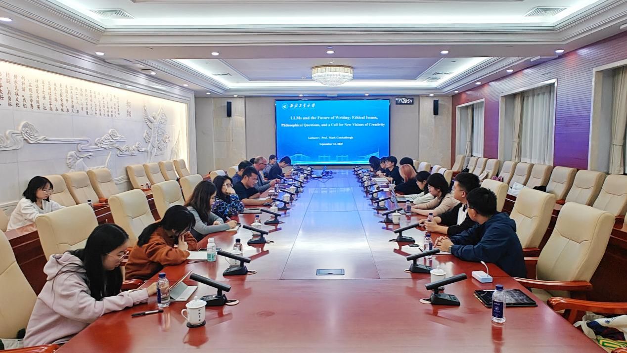 科克尔伯格教授以“大语言模型与写作的未来”为主题作学术报告,他结合与美国北伊利诺伊大学戴维·J.贡克尔教授合著的新书《沟通型人工智能》(Communicative AI),多维度剖析大语言模型带来的伦理挑战与机遇。他指出,大语言模型实现人类语言生成与运用,冲击人类是语言使用者的传统认知,还在改变人类思维与自我认知,并分析其在写作领域引发的伦理风险。针对大语言模型是否终结写作的担忧,他提出解构作者身份:传统以作者为创作核心,而大语言模型让写作失去单一人类作者,需重思创作源头。他借鉴后结构主义理论,主张关注点从“作者”转向“读者”与“文本的社会效用”,认为文本意义在传播、解读与社会互动中生成。基于此,他对大语言模型持肯定态度,认为其未终结写作,未来写作将有新形态:借助技术写作不等于停止思考,人类仍可亲自创作,借技术写作也需保持批判意识,探索人机思维共生模式。